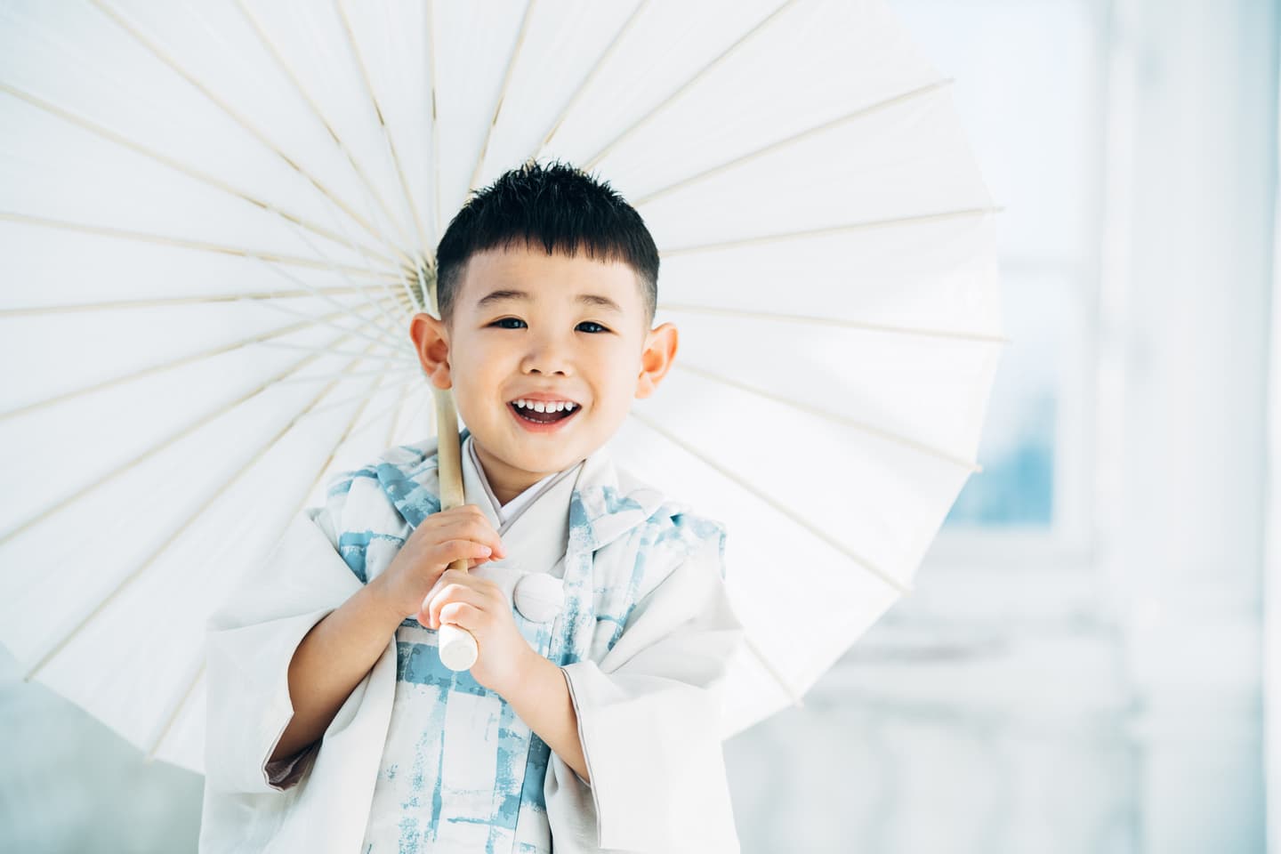 スタジオ撮影においても自然光が沢山入り、広々と動き回ることができる空間を御用意しております。着物、ヘアーメイクはそれぞれのプロフェッショナルが特別な七五三を作り上げます。